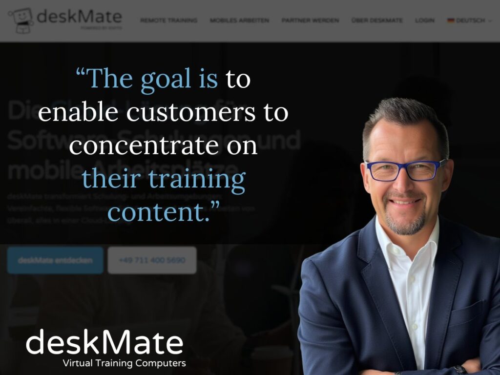 Online software training today requires one thing above all: a stable, readily available and easy-to-use technical basis. With the virtual training environment from deskMate virtual training environment, training organizations and software trainers can become productive in the shortest possible time without getting lost in complex IT structures.